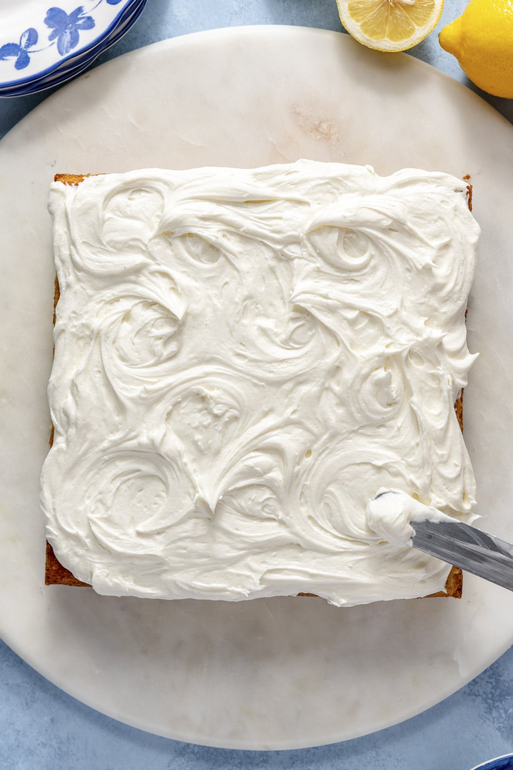 The frosted lemon snack cake can be cut into pieces and stored in a clean airtight container at room temperature for up to 3 days. You can refrigerate the cake, if necessary, but I find that it dries out more quickly in the fridge.